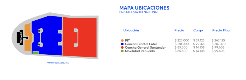 - Cancha General Santander: $99.608